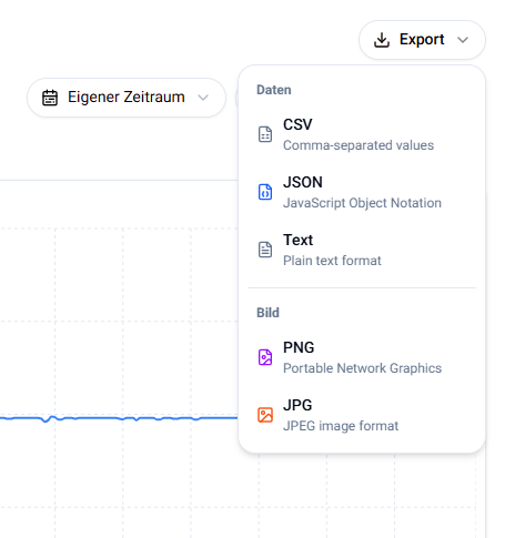 Sie haben ebenfalls die Möglichkeit alle im Diagramm angezeigten Werte in verschiedenen Formaten (z.B als "CSV") zu exportieren, indem Sie auf "Export" klicken. mehr erfahren