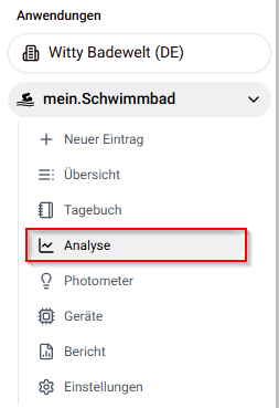 Klicken Sie dazu in der Menüleiste unter Anwendungen "mein.Schwimmbad" auf den Menüpunkt "Analyse" .