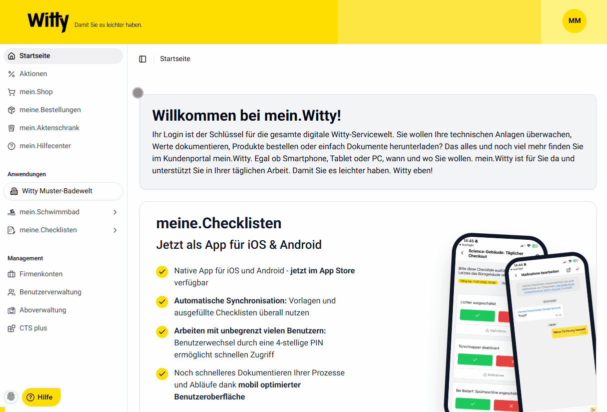 Als Hauptnutzer eines Firmenkontos in der Rolle "Administrator" verfügen Sie über die Berechtigung, Einträge zu löschen und in den Einstellungen verschiedene Funktionen wie die Verwaltung von Bädern, die Einstellung von Monatsberichten, sowie das Festlegen von Zählerständen zu konfigurieren.