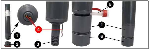 6. Außen am Sensor anhaftende Elektrolytreste mit Leitungswasser abspülen. Anschließend Blindkappe (6) abschrauben.
