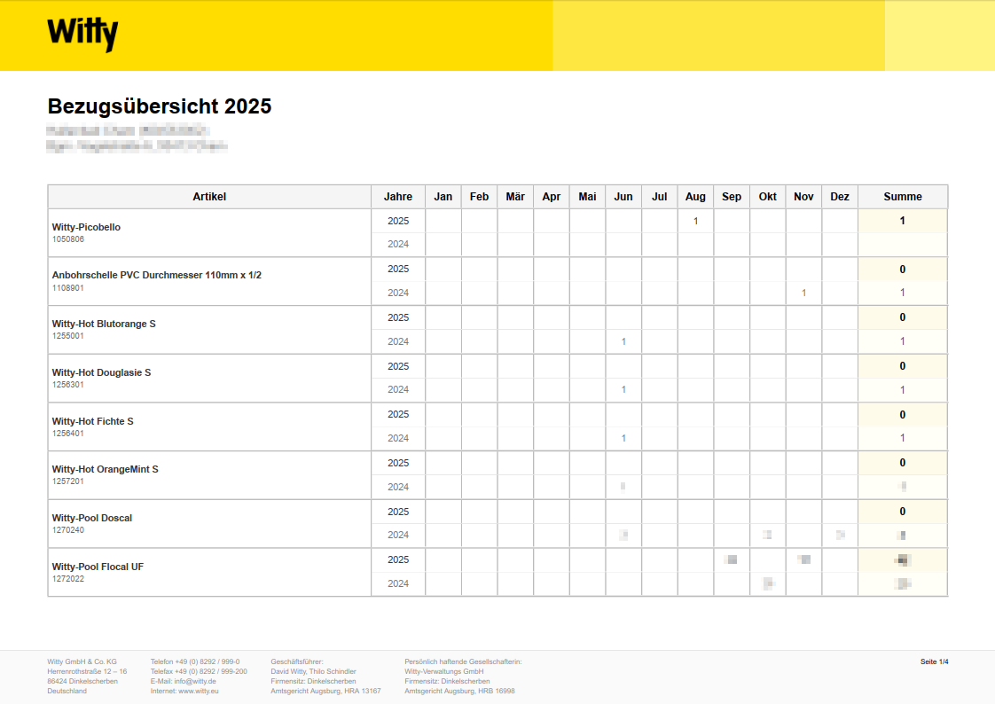 Mit der Funktion „Bezugsübersicht exportieren“ können Sie mit wenigen Klicks eine Zusammenfassung der Bestellungen eines beliebigen Jahres erstellen.