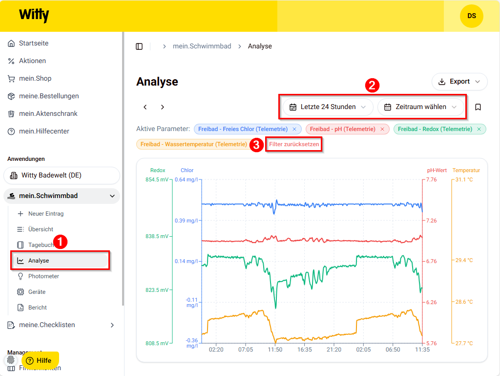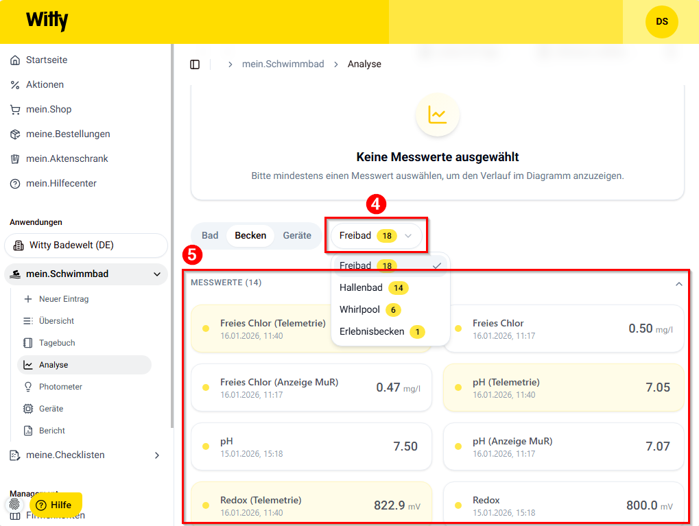 - Klicken Sie in der Menüleiste unter „mein.Schwimmbad“ auf den Menüpunkt „Analyse“.